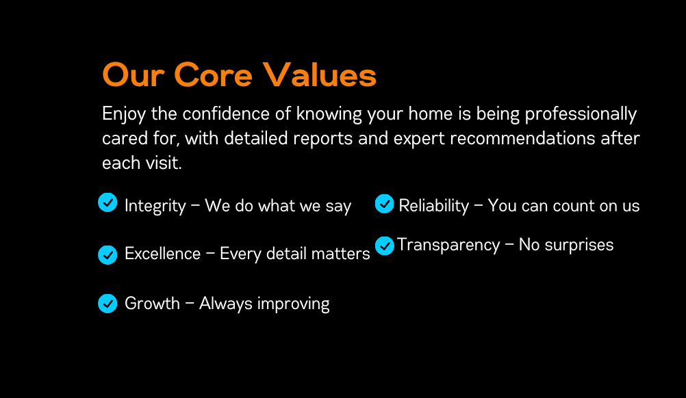 Enjoy the confidence of knowing your home is being professionally cared for, with detailed reports and expert recommendations after each visit.